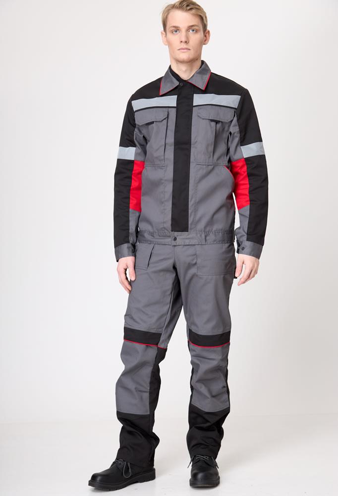 Мужской летний костюм «Гросс» состоит в комплекте из двух наименований и видов изделий – (плечевой и поясной) куртка летняя и полукомбинезон с защитными свойствами З, Ми.