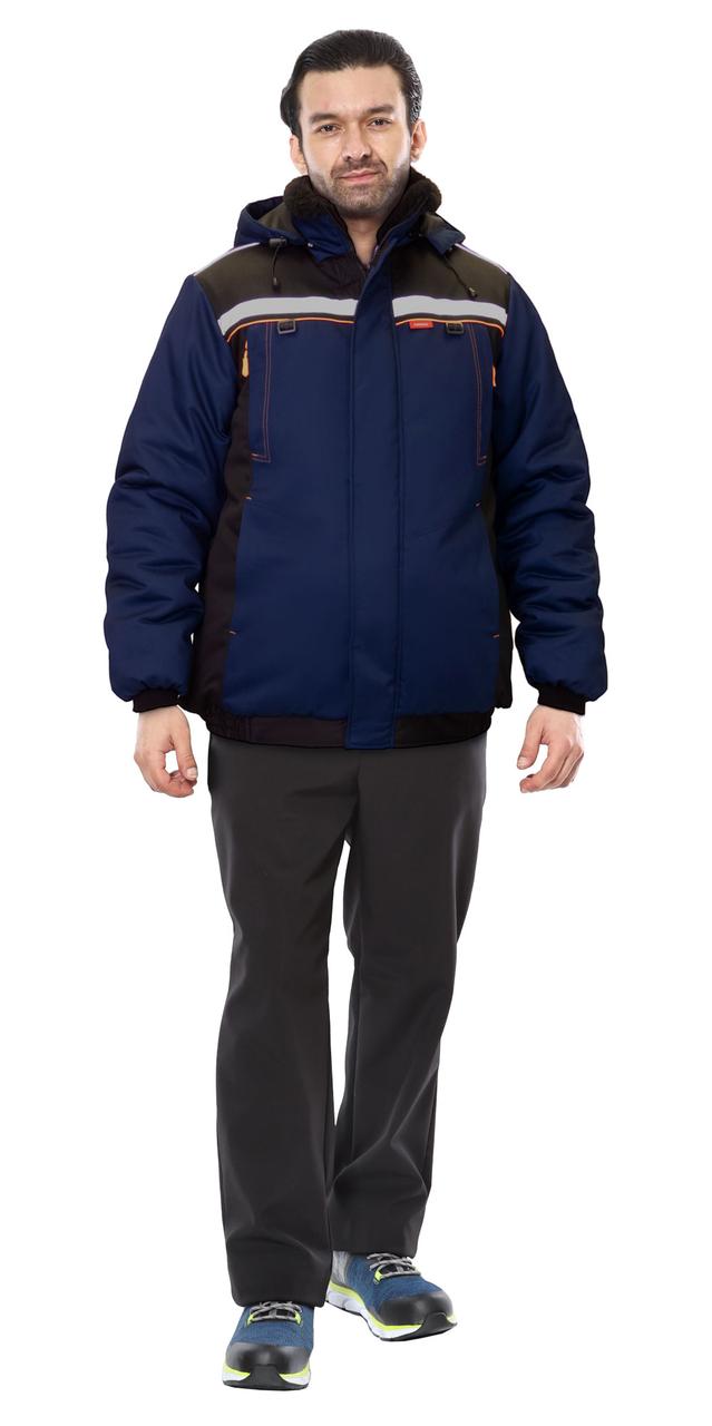 Куртка СИРИУС-ПРАКТИК зимняя кор. темно-синяя с черным и оранжевым кантом и СОП, мех. ворот